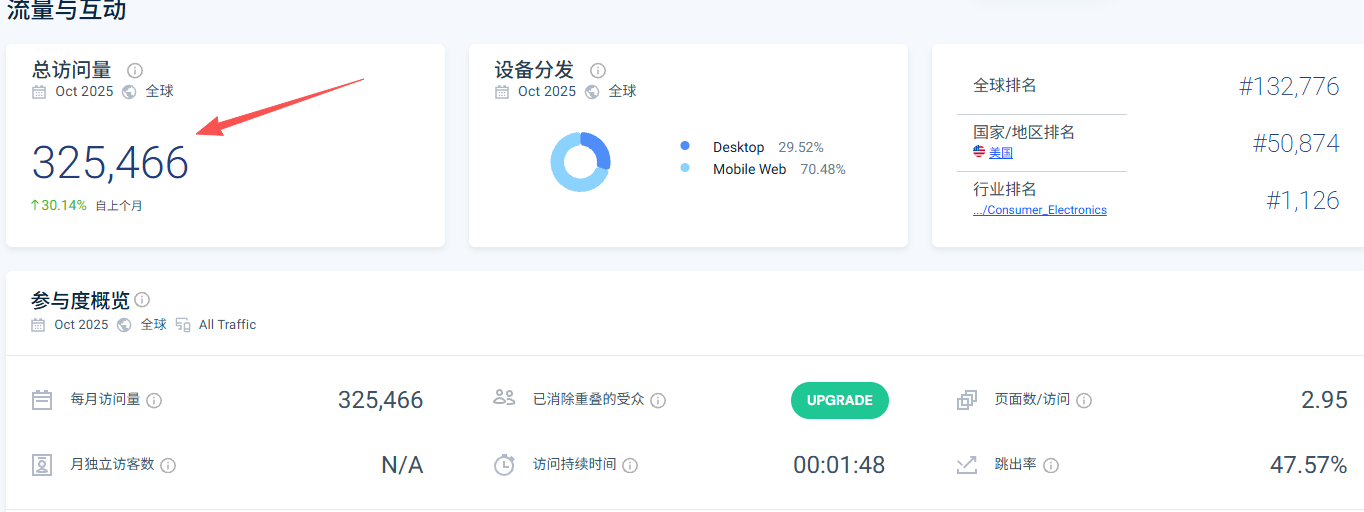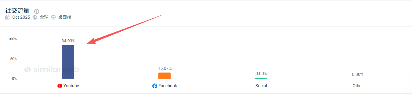 目前官網(wǎng)月訪問量超 32萬,其中32%為直接訪問,社媒流量中84.9%來自YouTube——它不僅是購買轉(zhuǎn)化場 。