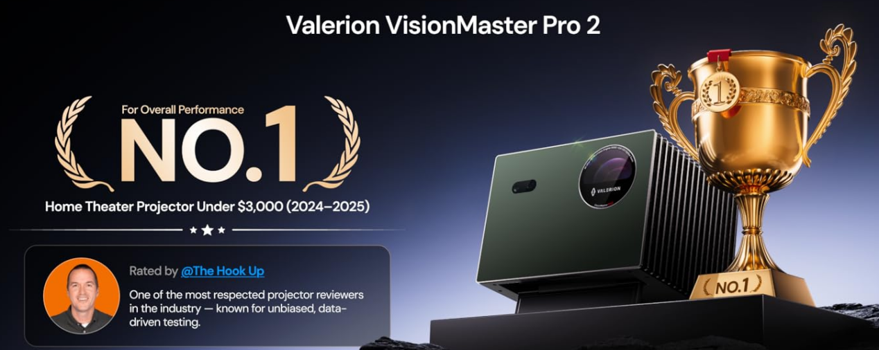 而知名科技紅人:The Hook Up 更是用了數(shù)百小時實測 Valerion Pro 2,并發(fā)布了一支長達(dá) 15 分鐘的“畫質(zhì)最佳設(shè)置指南”。視頻中,他逐一講解了亮度、色溫、伽馬、對比度、HDR/SDR切換等細(xì)節(jié),真實記錄了 Pro 2 在日夜場景、客廳與影音室中的表現(xiàn)。他坦言,自己通過調(diào)試后達(dá)到了“接近影院級”的畫面效果,同時建議高階用戶保留 EBL 模式與動態(tài)色調(diào)映射,以獲得更深黑場與精準(zhǔn)高光。他最終的判斷是:如果你是畫質(zhì)控或影院控,這款設(shè)備值得擁有。